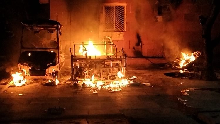 वृंदावन की मल्टीलेवल वाहन पार्किंग में चार्जिंग पर लगी गोल्फ कार्ट में आग लग गई। आग इतनी तेजी से फैली कि दो गाड़ियां और एक बाइक को भी चपेट में ले लिया। तीनों वाहन जलकर खाक हो गए।