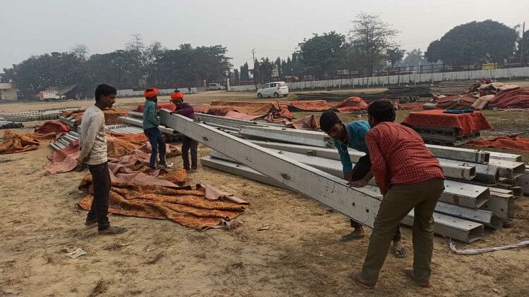 चंपा देवी पार्क में आयोजित होने वाले गोरखपुर महोत्सव के लिए पंडाल लगाने का काम शुरू हो गया है।