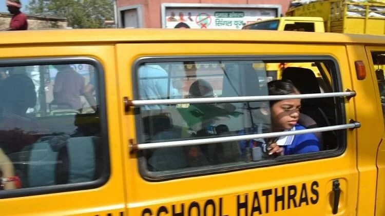 जाम में फंसा स्कूल वाहन