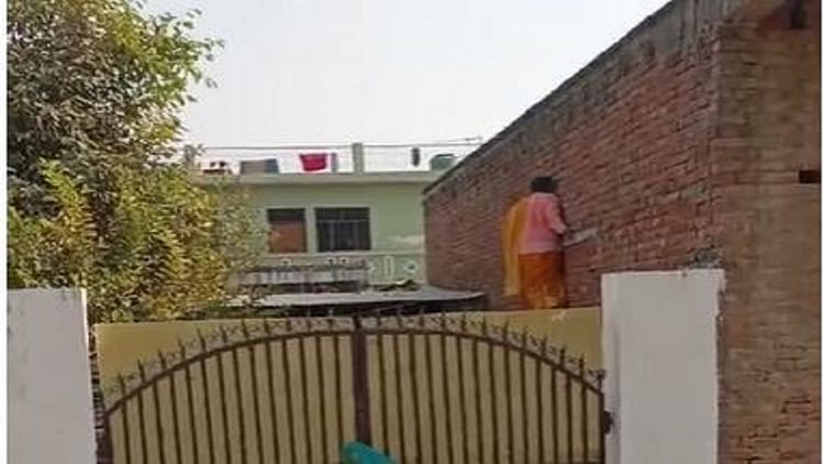 दिवार पर चढ़कर घर में प्रवेश करती विवाहिता