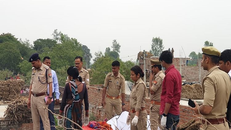 घटनास्थल पर जांच करती पुलिस