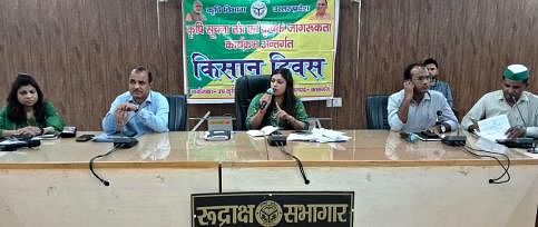 में किसान दिवस पर बैठक करती जिलाधिकारी मेधा रूपम।