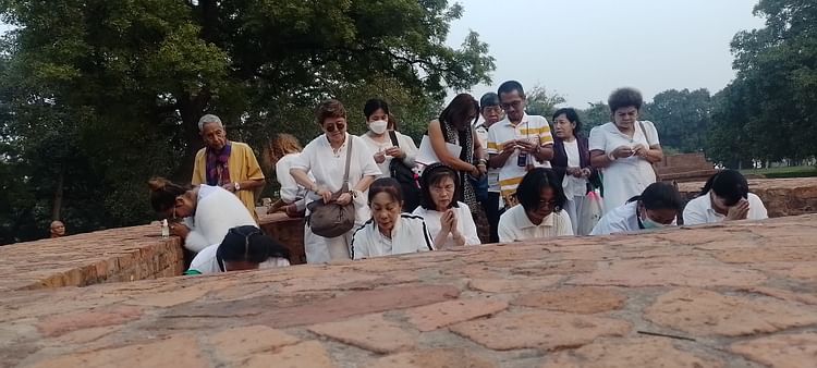 तपोस्थली स्थित शिवली स्तूप पर प्रार्थना करते थाईलैंड से आए अनुयायी। संवाद