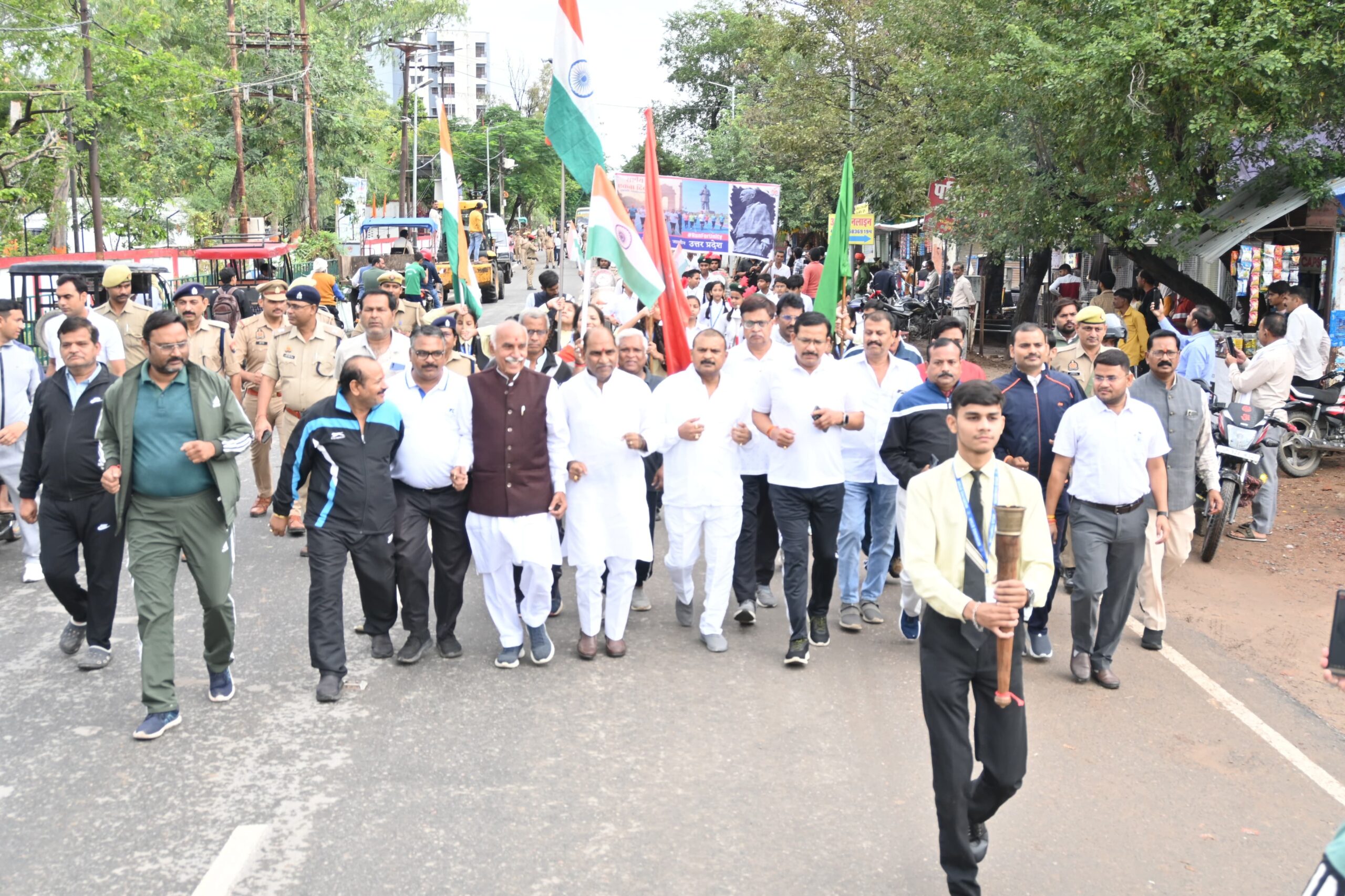 जालौन पुलिस अधीक्षक डॉ० दुर्गेश कुमार ने कहा कि जनसमूह ने लौह पुरुष सरदार वल्लभभाई पटेल की 150वीं जयंती पर पुलिस लाइन से टाउन हॉल तक लगभग 3 किलोमीटर की भव्य रन फॉर यूनिटी का आयोजन किया गया। उन्होंने अधिकारियों और कर्मचारी राष्ट्रीय एकता अखंडता और सुरक्षा बनाए रखने की शपथ दिलाई।