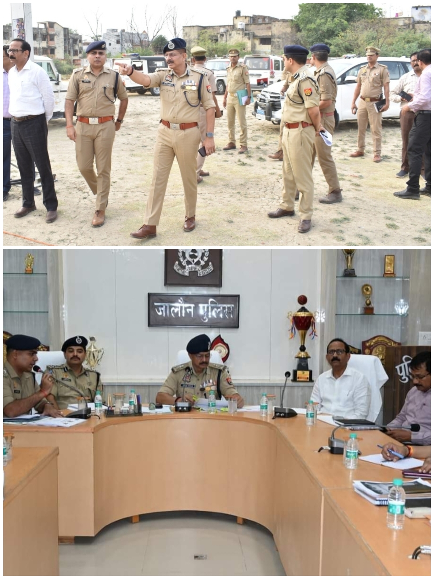 मुख्यमंत्री योगी आदित्यनाथ उत्तर प्रदेश सरकार,के जनपद जालौन में प्रस्तावित भ्रमण कार्यक्रम के दृष्टिगत अपर पुलिस महानिदेशक द्वारा मंडलायुक्त विमल दुवे व डीआईजी कलानिधि नैथानी झांसी एवं व, जालौन निर्वाचन अधिकारी राजेश कुमार पाण्डेयजी जालौन पुलिस अधीक्षक डॉ ईरज राजा के साथ क्षेत्राधिकार व अन्य अधिकारी मौजूद जनपद जालौन में स्थित उरई में कार्यक्रम स्थल पर सुरक्षा व्यवस्था का स्थलीय निरीक्षण कर सम्बन्धित को आवश्यक दिशा-निर्देश दिये गये।
