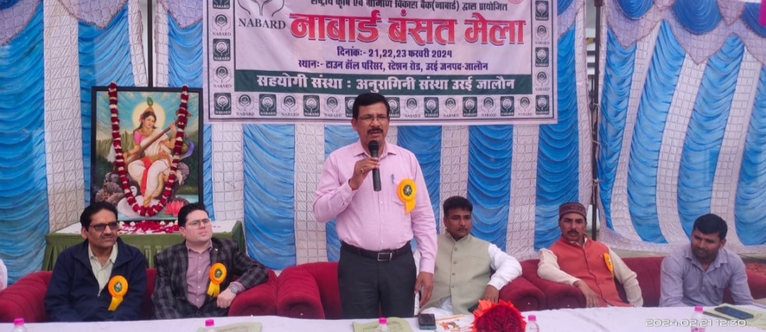 (उरई जालौन) उरई; जालौन जिलाधिकारी राजेश कुमार पाण्डेय जी ने टाउन हॉल के मैदान में नाबार्ड द्वारा आयोजित तीन दिवसीय नाबार्ड बंसत मेला का दीप प्रज्वलित कर शुभारंभ किया। स्वयं सहायता समूह की महिलाओं ने नाबार्ड बसंत मेले में विभिन्न प्रकार के उत्पादों का स्टॉल लगाया गया, जिसका जिलाधिकारी ने अवलोकन किया खरीदारी कर लोगों को भी प्रेरित किया।