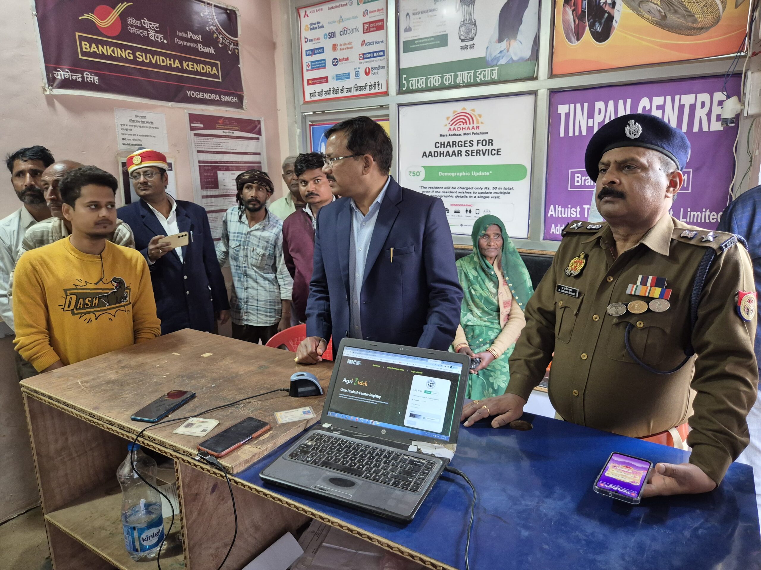(उरईजालौन)उरई: जनपद में प्रत्येक ग्राम पंचायतों व जन सुविधा केन्द्रों पर कैम्प आयोजित कर फार्मर रजिस्ट्री व फैमिली आईडी का कार्य चल रहा है। जिलाधिकारी राजेश कुमार पाण्डेय व पुलिस अधीक्षक डॉ दुर्गेश कुमार ने एट सीएससी पर फार्मर रजिस्ट्री व फैमिली आईडी हेतु चल रहे कैम्प का औचक निरीक्षण किया गया। उपस्थित किसानों को फार्मर रजिस्ट्री व फैमिली आईडी की उपयोगिता के बारे में विस्तार जानकारी दी गई साथ ही साथ सम्बंधित अधिकारियों को फार्मर रजिस्ट्री व फैमिली आईडी में बढ़ चढ़कर काम करने के लिए निर्देशित किया।