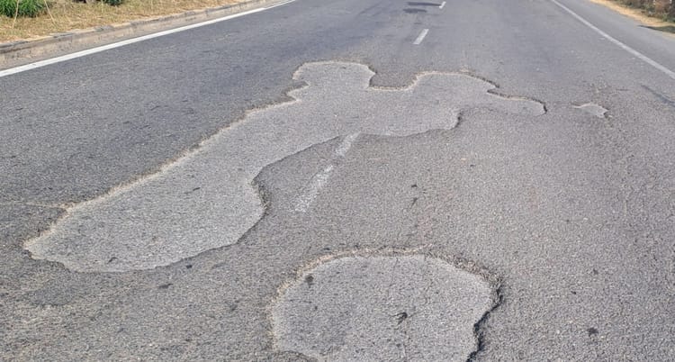 कानपुर से झांसी जाने वाले राष्ट्रीय राजमार्ग की एक लेन पर बड़े गड्ढों से वाहन चालकों को भारी परेशानी हो रही है।