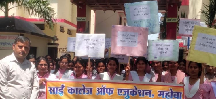 महोबा। शहर के साईं कॉलेज ऑफ एजुकेशन में आयोजित कार्यक्रम में छात्राओं ने रैली निकालकर सशक्त नारी, सशक्त राष्ट्र का संदेश दिया।