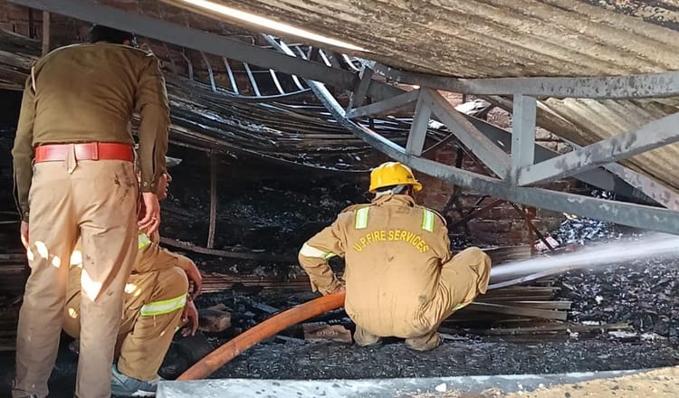 कोंच। वेल्डिंग की चिंगारी से गद्दा गोदाम में भीषण आग लग गई। लोगों ने दमकल का फोन नंबर न लगने पर पुलिस को सूचना दी।