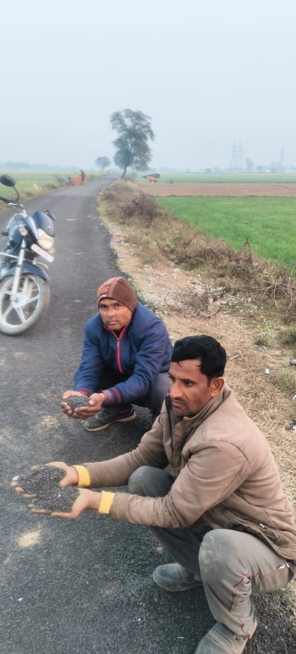 मुख्यमंत्री योगी आदित्यनाथ के प्रोजेक्ट गांव ऐरी रामपुरा में मंडी समिति की ओर से बनाई गई सड़क महज 20 दिन में ही उखड़ गई।