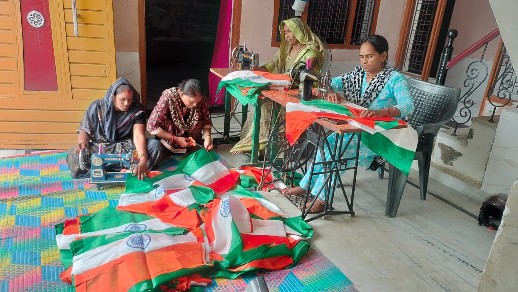 Jalaun आजादी के अमृत महोत्सव पर इस वर्ष भी समूह की दीदी द्वारा दस हजार तिरंगा झंडा बनाए गए