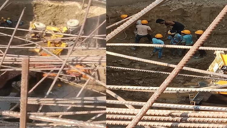 30 फीट गहरे गड्ढे में गिरी निर्माण कार्य में लगी जेसीबी,