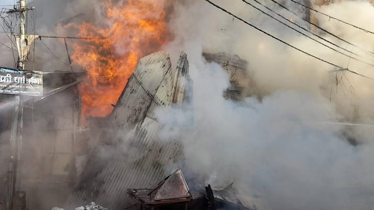 दमेले इंटर कॉलेज के पास दुकानों में लगी भीषण आग।