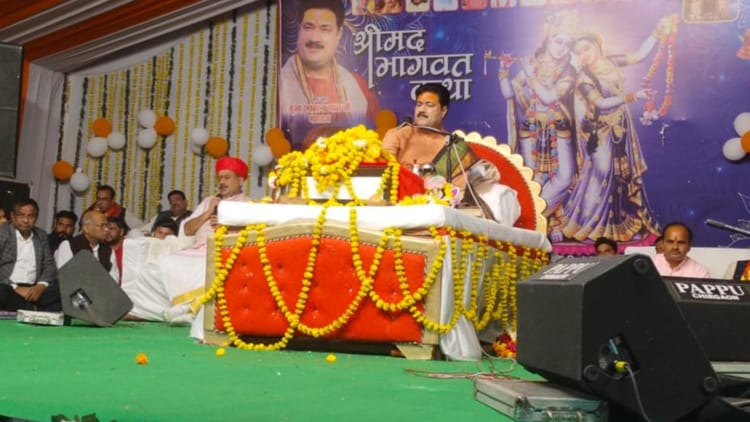 चिरगांव के ग्राम पहाड़ी बुजुर्ग में स्थित रायसेनिया बाबा मंदिर पर स्वर्गीय किशोरी शरण दांगी की पांचवीं पुण्य स्मृति के अवसर पर सोमवार को श्रीमद्भागवत कथा के दौरान भागवत आचार्य पंडित रमाकांत व्यास ने कथा वृंदावन की महिमा का विस्तार से वर्णन किया। उन्होंने बताया कि वृंदावन वह दिव्य धाम है, जहां कण-कण में कृष्ण का वास है। और जहां की रज, वायु, कदंब और यमुना स्वयं मोक्षदायिनी हैं।