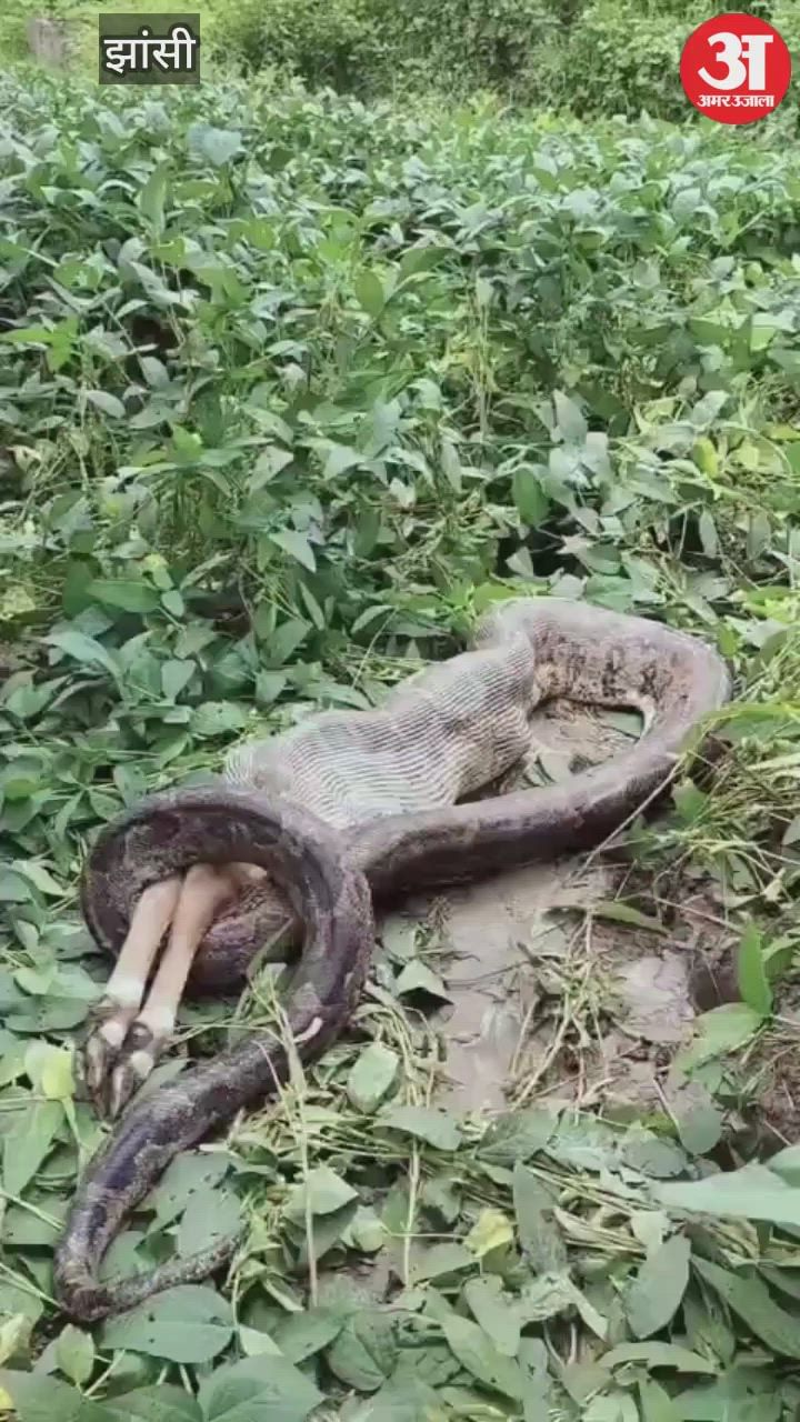 Jhansi: देखते ही देखते सेकंडों में गाय के बछड़े को निगल गया विशालकाय अजगर, देखें वीडियो