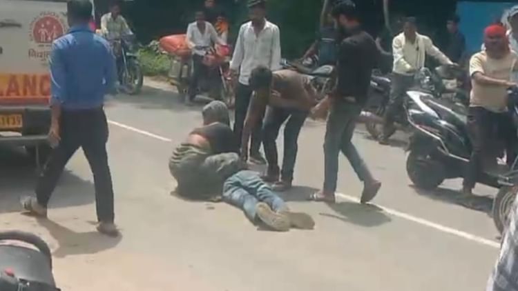 गोली लगने के बाद सड़क पर पड़ा अरविन्द