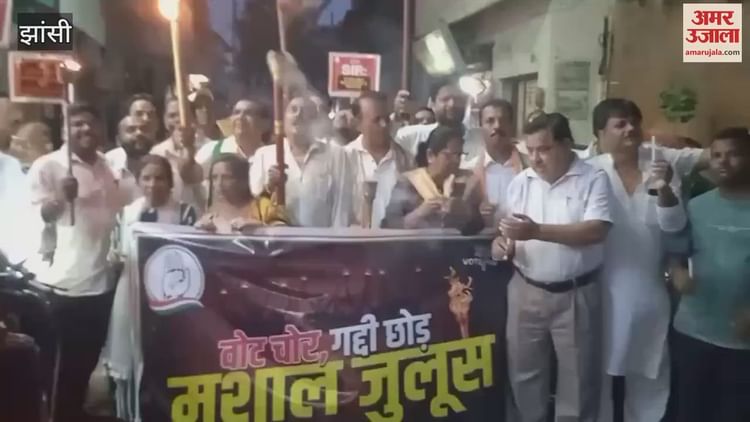 कांग्रेस कार्यकर्ताओं ने शहर में हाथ में मशाल लेकर जुलूस निकाला। इस दौरान नारे लगाए वोट चोर गद्दी छोड़। कुछ दिनों से लगातार कांग्रेस वोट को लेकर बीजेपी को घेर रही है। कांग्रेस वोट चोरी का आरोप लगाकर लगातार प्रदर्शन कर रही है।