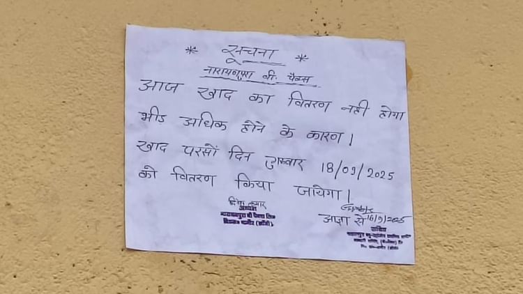 सुबह से लाइन में लगे भारी संख्या में किसान बिना खाद के मायूस होकर वापस लौट गए। कर्मचारियों ने समिति के बाहर नोटिस चस्पा कर दिया। जिस पर लिखा है भीड़ अधिक होने के कारण आज खाद का वितरण नहीं होगा। परसों 18 सितंबर को खाद बांटी जाएगी। अब ऐसे में किसानों का सवाल है कि यदि 18 को भी भीड़ हुई तो उनको खाद मिल पाएगी या नहीं। एक दिन पहले ही सांसद अनुराग शर्मा ने खाद उपलब्ध कराने को लेकर जिला अधिकारी को पत्र लिखा था। इसके बाद भी खाद वितरण का यह आलम है।
