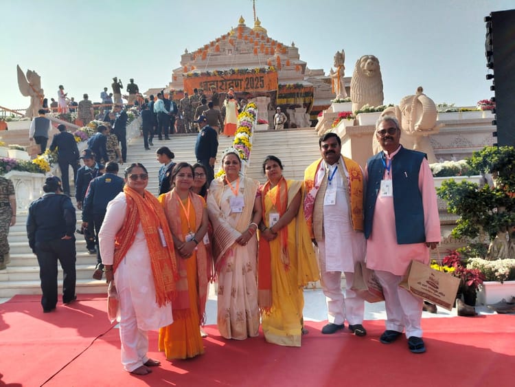 झांसी। अयोध्या में श्रीराम जन्मभूमि मंदिर के शिखर पर ध्वजारोहण समारोह में झांसी मंडल से बसों से 210 श्रद्धालु और साधु-संत पहुंचे और इस ऐतिहासिक पल के गवाह बने। जैसे ही धर्मध्वजा मंदिर के शिखर पर फहराया, सभी जय श्रीराम के जयकारे लगाने लगे।
