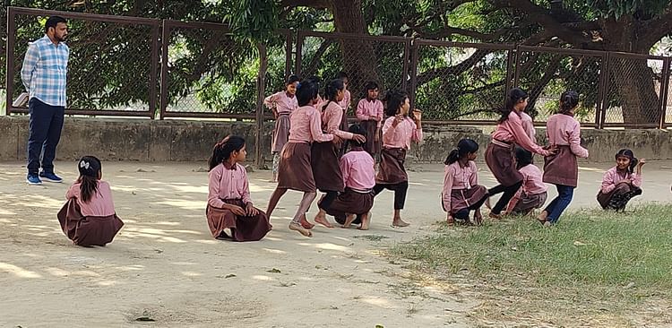 काशी सांसद खेल प्रतियोगिता में खेलते बच्चे