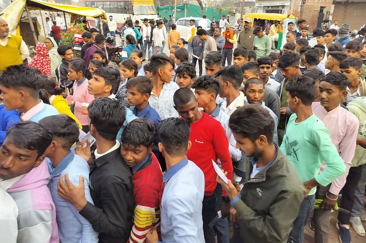 परीक्षा केंद्र के बाहर खड़े परीक्षार्थी