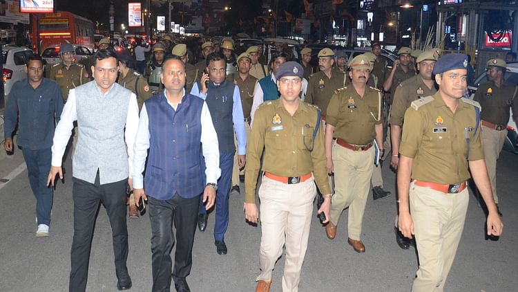 आचार संहिता लगने के बाद डीएम और एसएसपी के साथ पुलिस फ़ोर्स ने किया रूट मार्च