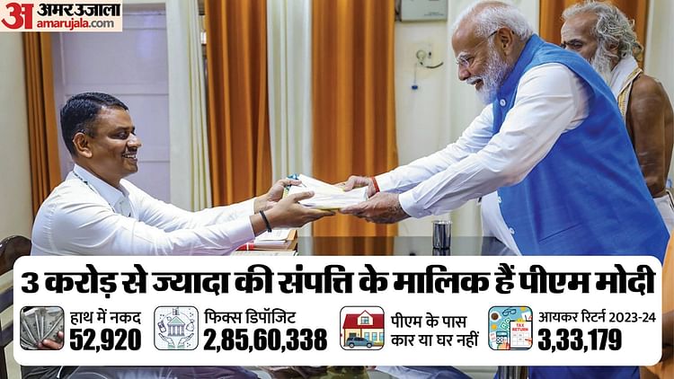 प्रधानमंत्री नरेंद्र मोदी 3.02 करोड़ रुपये की चल संपत्ति के मालिक हैं। उनके पास 52,920 रुपये नकद हैं। बीते पांच साल में प्रधानमंत्री ने 84 लाख रुपये का इनकम टैक्स रिटर्न दाखिल किया है। प्रधानमंत्री ने न कोई लोन ले रखा है और न उन पर किसी का बकाया है। उनके खिलाफ एक भी आपराधिक मुकदमा नहीं है।