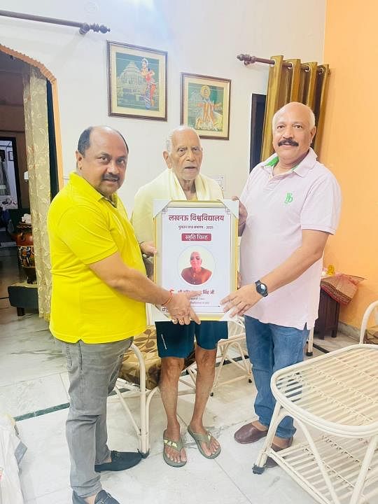 लखनऊ। लखनऊ विश्वविद्यालय के पुरातन छात्र और साल 1961-62 में छात्रसंघ के महामंत्री रहे सुरेंद्र विक्रम सिंह को सम्मानित किया गया है। लविवि एलुमिनाई फाउंडेशन की ओर से अनिल सिंह वीरू, पूर्व जूनियर लाइब्रेरियन प्रदीप सिंह बब्बू और पूर्व छात्र जितेंद्र सिंह ने सुरेंद्र विक्रम के इंदिरानगर स्थित निजी आवास पर उनसे मुलाकात की। उन्हें छात्रावास की पत्रिका युगांतर, श्रीमद्भागवत गीता की प्रति और अंग वस्त्र भेंट कर उन्हें सम्मानित किया। सुरेंद्र विक्रम जयप्रकाश नारायण जेपी के सहयोगी और निजी सचिव रहे हैं और वह जीपी के आखिरी दिनों तक उनके साथ रहे।