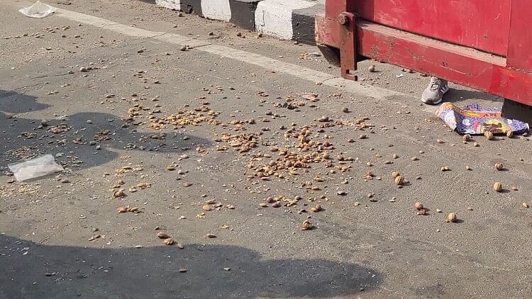 सड़क पर बिखरा ड्राई फ्रूट।