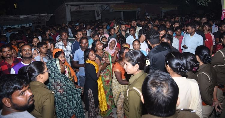 मजदूर की मौत के बाद प्रदर्शन करते परिजन व अन्य।