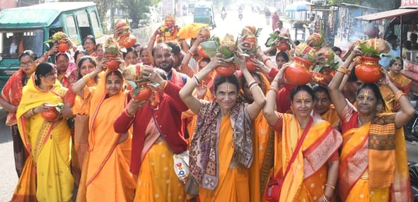 योजना कॉलोनी सेक्टर-ए सीतापुर मार्ग स्थित बाबा विश्वनाथ मंदिर से बुधवार को कलश यात्रा धूमधाम से निकाली गई।