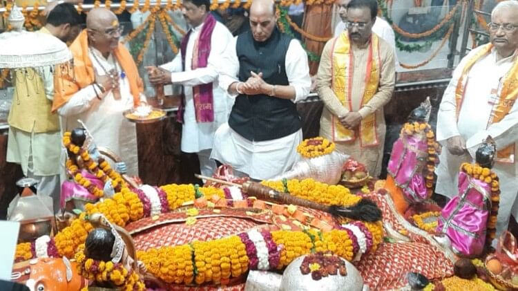 लखनऊ में लेटे हनुमान जी के दर्शन करते रक्षा मंत्री राजनाथ सिंह