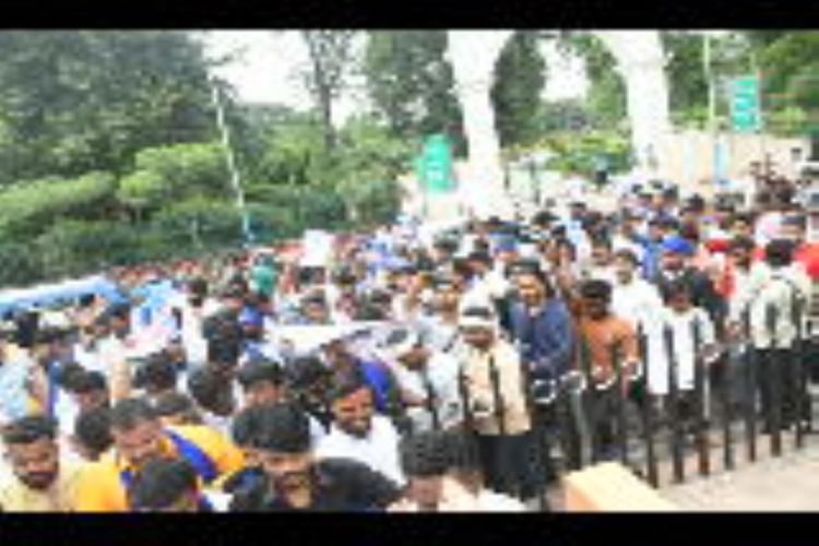 गयासुद्दीन हैदर कैनाल बस्ती तोड़ने के आदेश के खिलाफ आजाद समाज पार्टी के कार्यकर्ताओं ने बृहस्पतिवार को परिवर्तन चौक पर प्रदर्शन किया।