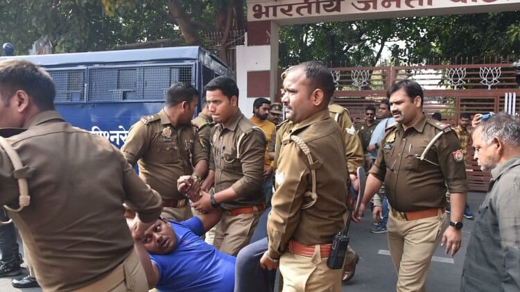 69000 सहायक शिक्षक भर्ती में 19000 सीटों पर हुए आरक्षण गड़बड़ी से वंचित आरक्षण पीड़ित अभ्यर्थियों ने शनिवार को लखनऊ में भाजपा मुख्यालय पर घेराव करने की कोशिश की। अभ्यर्थी गेट के अंदर घुसने की कोशिश कर रहे थे। इनके गेट के पास पहुंचते ही वहां मौजूद पुलिस कर्मियों ने उन्हें रोक दिया। इसके बाद इन्हें खींचकर वहां से हटाया गया। इस प्रक्रिया में पुलिस को बल का प्रयोग भी करना पड़ा।