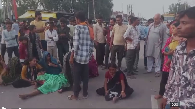 कानपुर-सागर हाईवे पर कुनेहटा तिराहे पर जाम लगाए परिजन व कस्बावासी