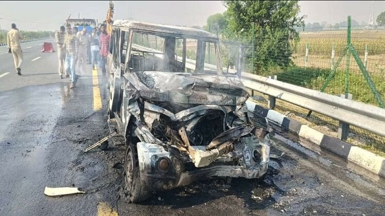 घटना के बाद अचानक बोलेरो में लगी आग