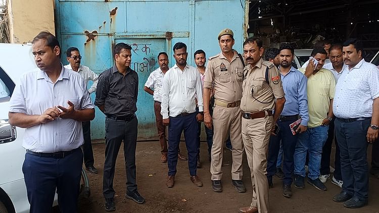 फैक्टरी में जांच करते समिति के सदस्य