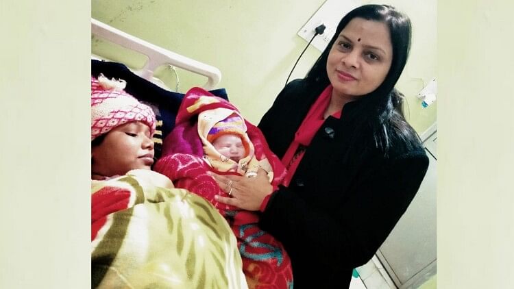 प्राण-प्रतिष्ठा के दिन प्रसव के बाद जच्चा-बच्चा के साथ मौजूद डॉ. शालिनी चौहान।