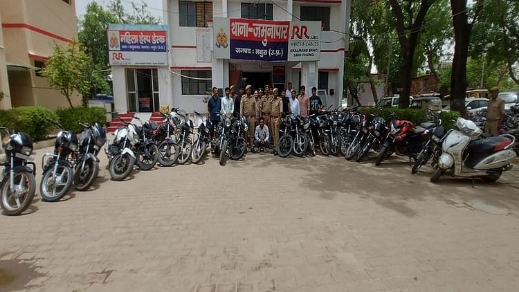 मथुरा के जमुनापार थाना पुलिस व स्वाट टीम द्वारा वाहन चोरी करने वाले अंतर्जनपदीय शातिर वाहन चोर को चोरी के 22 दुपहिया वाहनों सहित किया गिरफ्तार करने में सफलता हासिल हुई है। शनिवार को उसे कोर्ट में प्रस्तुत कर जेल भेजा गया। आरोपी बेहद शातिर था। वह मथुरा से बाइक/स्कूटी चुराने के बाद अलीगढ़ और बुलंदशहर में लोगों को कर्ज होने की बात कहते हुए सस्ते दामों में बेच देता था। अलीगढ़ के खैर में उसकी एक बहन रहती है। वह अपराध करने के बाद उसे घर जाकर छिप जाता था।