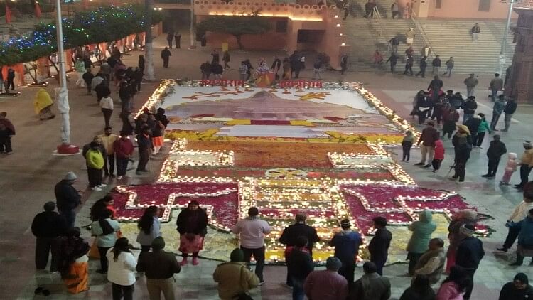 श्रीराधाकृष्ण को राम रूप देने के लिए उनका विशिष्ट श्रंगार किया गया। सुबह हवन-पूजन, पुष्प सहस्त्रार्चन, दोपहर को ठाकुरजी की विशेष महाआरती की गई। सुविख्यात भजन गायक जगदीश ब्रजवासी एवं उनकी मंडली ने रामधुन के मंगल भजन गाए। भक्तों को प्रसाद का वितरण किया गया। शाम को संपूर्ण जन्मभूमि प्रांगण में विशाल दीपदान किया गया। इस दौरान दीवाली जैसा माहौल नजर आया।