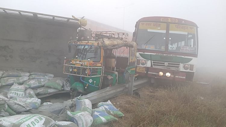 घने कोहरे में टेंपो से भिड़ी रोडवेज बस (फाइल) – फोटो : संवाद