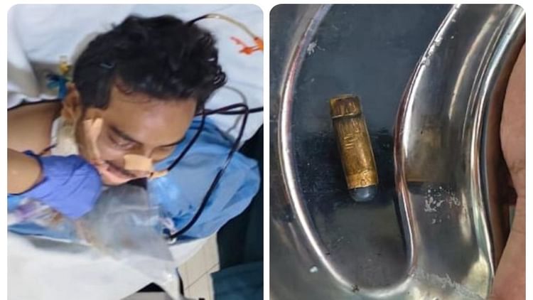 अस्पताल में भर्ती जुनैद और उसके पेट से निकाली गई गोली।