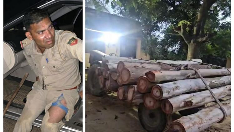 पीटा गया दरोगा, वर्दी भी फाड़ी। वन माफिया से बरामद कटे हुए पेड़।