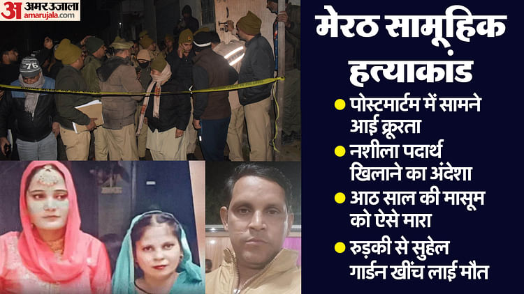 मेरठ में कातिलों ने बड़ी बेरहमी से सुहेल गार्डन में परिवार का कत्ल किया है। आठ साल की बेटी अक्शा का गला घोटा, मोईन, उनकी पत्नी आसमा और दोनों बेटी अजीजा, अलइफ्शा के कातिलों ने सिर पर कई प्रहार किए है और फिर गले पर वार किए।
