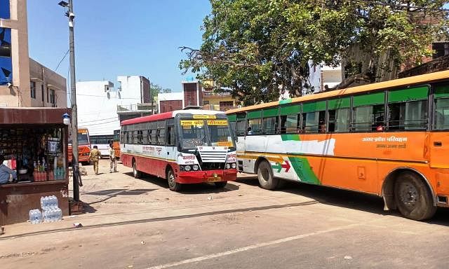 कासगंज में रोडवेज बस स्टेंड पर खड़ी बसें।