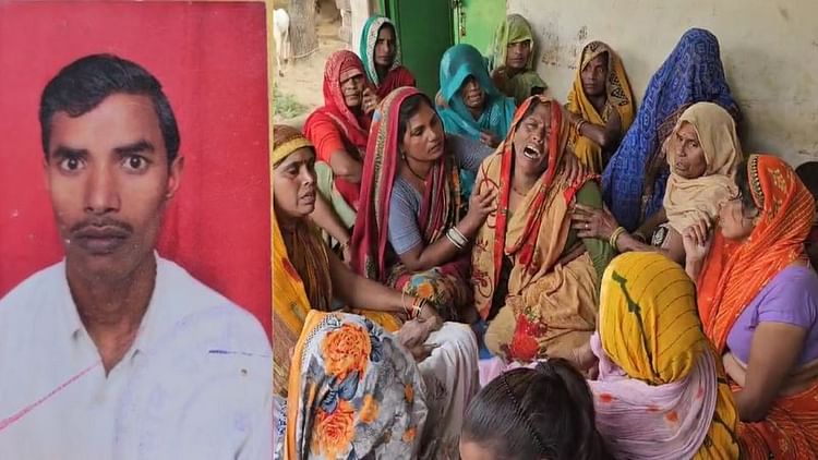 मृतक किसान और विलाप करती परिवार की महिलाएं