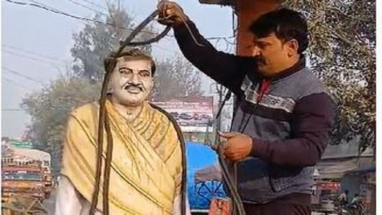 एटा में माया पैलेस होटल चौराहे पर स्थित पं.दीनदयाल उपाध्याय की प्रतिमा के साथ अराजक तत्वों ने शर्मनाक हरकत की। प्रतिमा के गले में रस्सी बांध दी गई। इस दौरान आसपास लगे शीशे भी तोड़ दिए गए। लोगों ने आज सुबह जब ये दृश्य देखा तो आक्रोश फैल गया। सूचना पर पुलिस भी मौके पर पहुंच गई। पुलिस मामले की छानबीन में जुटी हुई है।