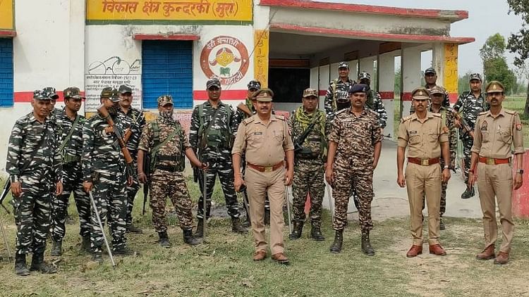 मुरादाबाद में चुनाव को लेकर ड्यूटी पर तैनात पुलिस बल