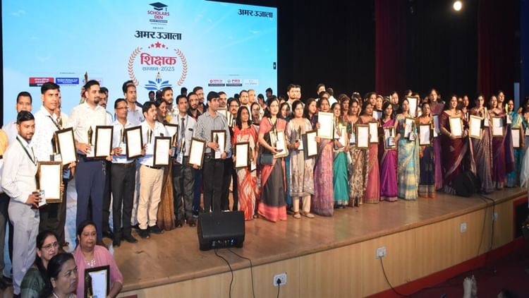 मुरादाबाद के टीएमयू सभागार बुधवार को तालियों की गड़गड़ाहट और मुस्कुराहटों से गूंज उठा। मंच पर जब एक-एक कर जिले के 152 सर्वश्रेष्ठ शिक्षक सम्मानित होने पहुंचे तो उनकी आंखों में चमक और चेहरे पर तृप्ति साफ झलक रही थी। परिवार की मौजूदगी और विद्यार्थियों के बीच सम्मान पाकर गुरुजन भावुक हो उठे। अमर उजाला और स्कॉलर्स डेन की ओर से आयोजित शिक्षक सम्मान-2025 में जिले के 90 स्कूलों के 40 हजार से ज्यादा विद्यार्थियों की वोटिंग से चुने गए शिक्षकों को सम्मानित किया गया।